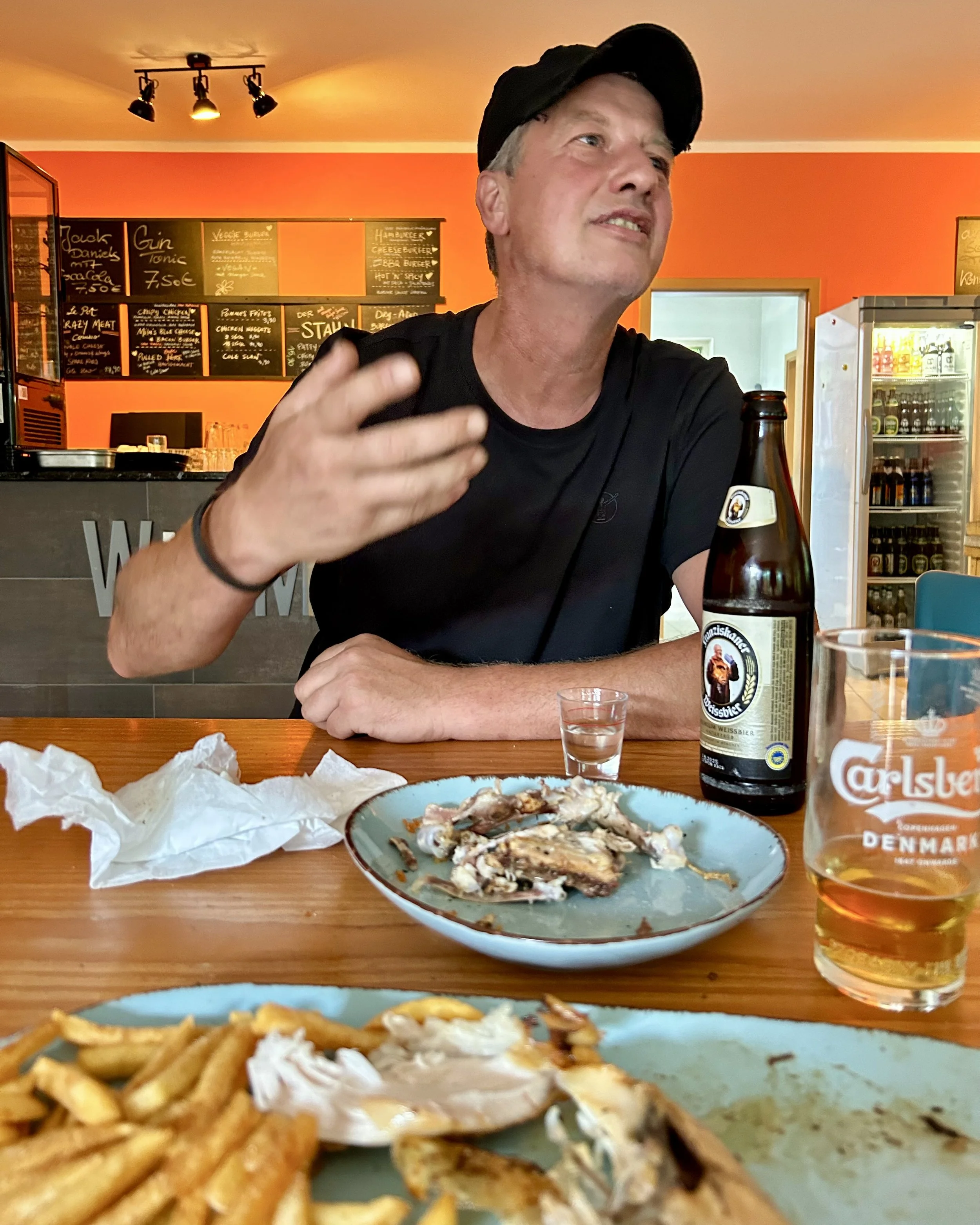 Schön war es in Neu Fahrland – auf dem Gelände der Baumschule Kania. Endlich eine echte Küche und ein solides Haus. Nach drei Jahren im Container, in dem wir Burger gebraten und Caterings vorbereitet haben, fühlte sich das fast luxuriös an: ein Dach über dem Kopf, das nicht wegweht. Wasserleitungen, die nicht einfrieren. Und ein Biergarten, in dem unsere Gäste sitzen konnten, während Walter und Elvis ihren üblichen Quatsch machten.